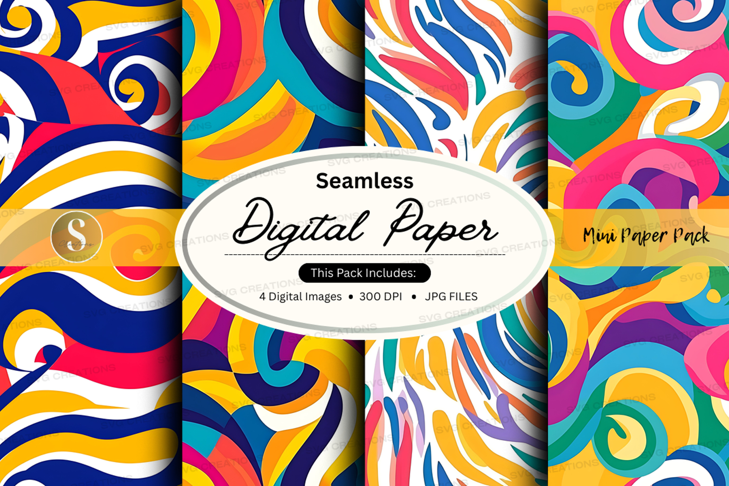 Swirls Colorful Patterns Bright Digital Paper Seamless 300 Dpi Jpg Files