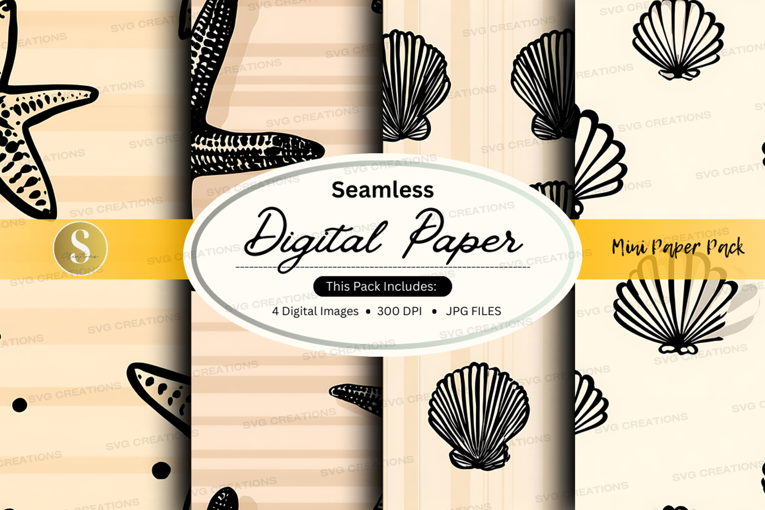 Digital Paper Seamless 300 Dpi Digital Images Seashells Jpg Files Beach Theme