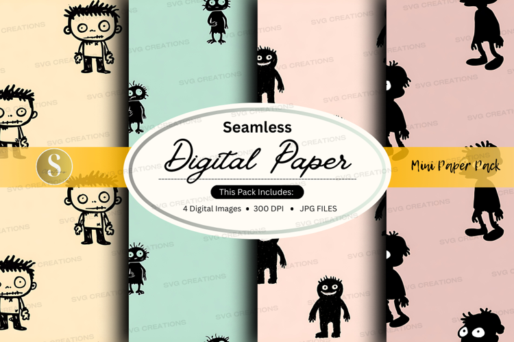 Halloween Pattern Zombie Digital Paper Ghost Jpeg 300 Dpi Digital Images Seamless Paper Monster Theme