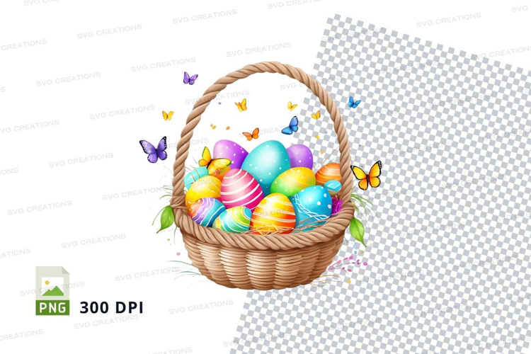 Easter basket with decorated eggs and butterflies example image 1
