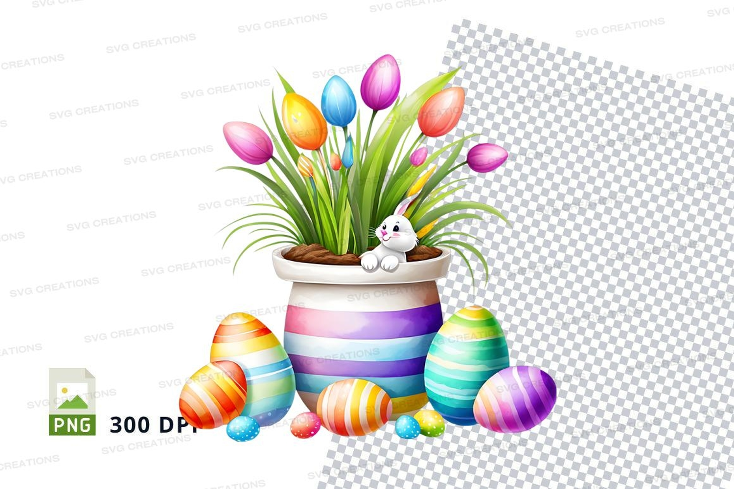 Spring Easter Celebration Colorful Bunny Stripes Easter Eggs Tulips