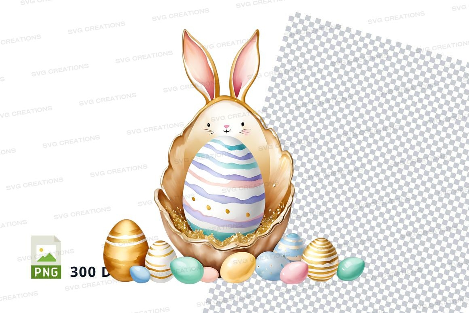 Holiday Gold Easter Eggs Celebration Colorful Bunny Rabbit Easter Eggs Decorated