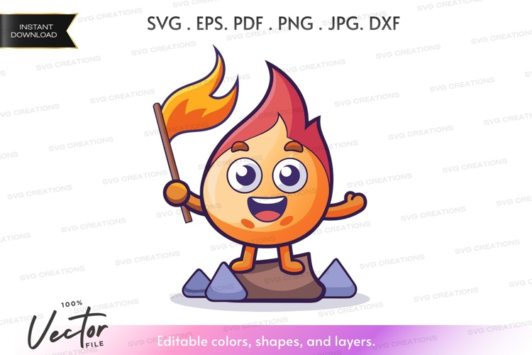 Character Cartoon Fun Smile Happy Rock Outdoor Fire Flame Flag