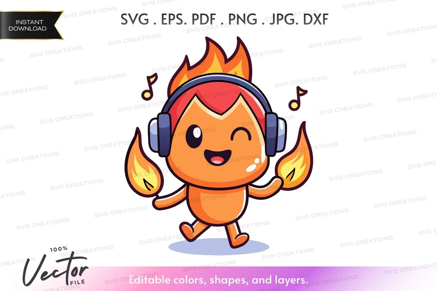 Character Cartoon Dancing Music Happy Headphones Flame Entertainment Musical Notes