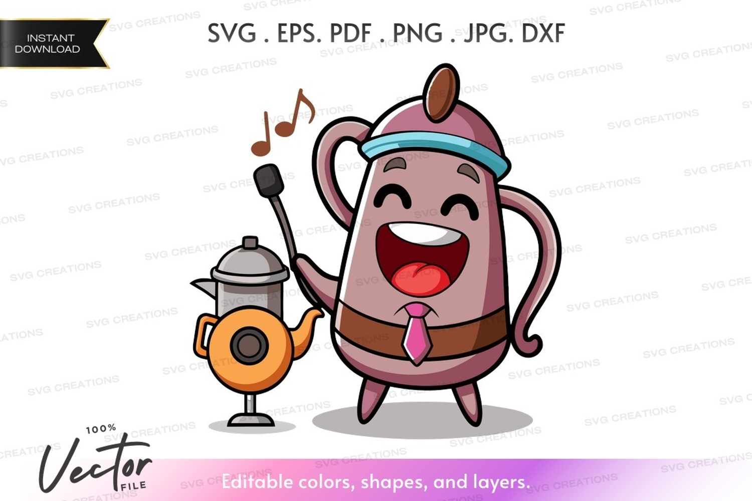 Cartoon Coffee Music Happy Clipart Microphone Teapot Singing