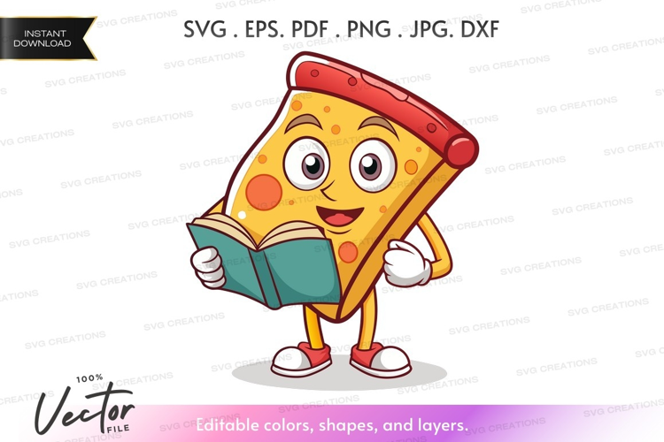 Book Character Cartoon Fun Food Happy Pizza Slice Education Reading