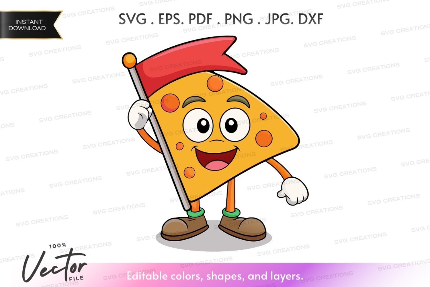 Similar Design Products to Cheerful pizza slice character holding a flag