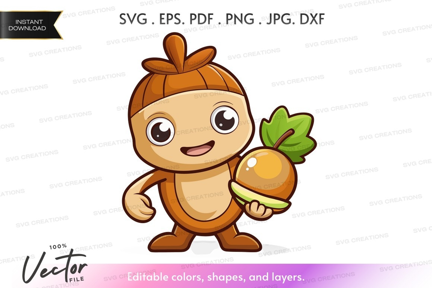 Illustration Character Cartoon Vector Cute Leaf Silhouette Clipart Acorn Anthropomorphized
