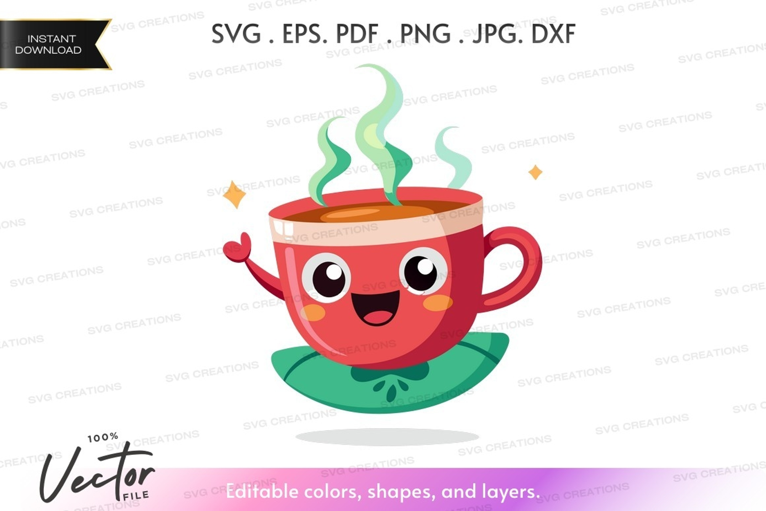 Cartoon Vector Happy Clipart Drink Steam Morning Smiling Caffeine Coffee Cup