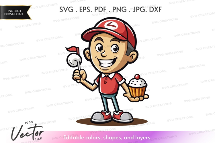 Cartoon Shirt Happy Boy Cupcake Spoon Red Cap