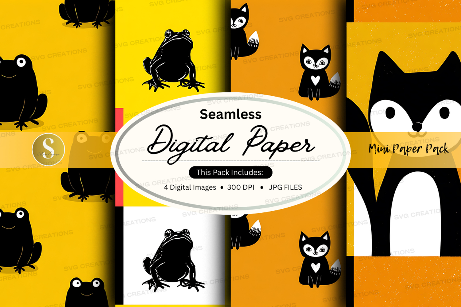 Digital Paper Seamless 300 Dpi Owls Yellow Background Foxes Animal Illustrations Frogs Jpeg Files