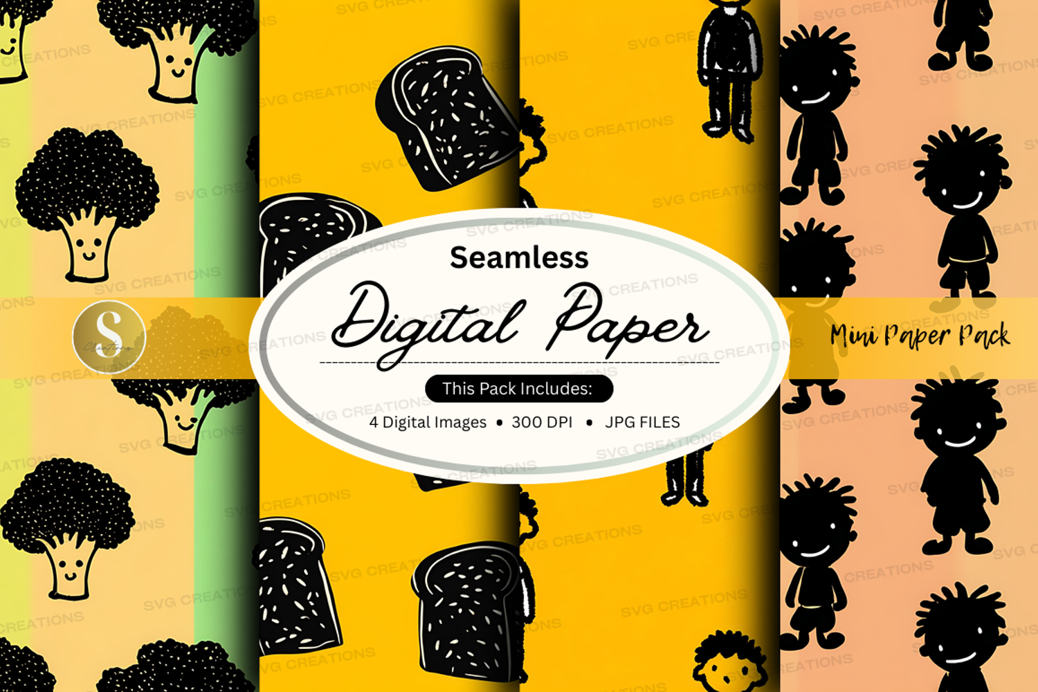 Patterns Gradient Characters Digital Paper Seamless Broccoli Toast