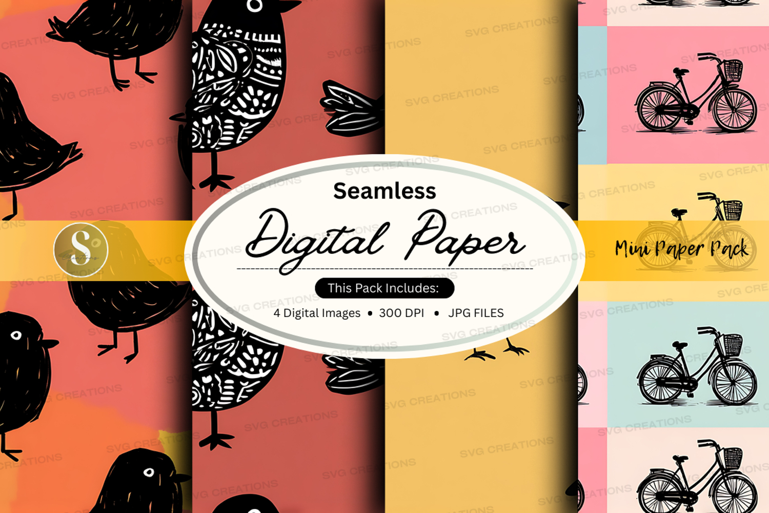 Bring instant charm and versatility to your creative projects with this exclusive set of 4 seamless pattern images. Each design is crafted to deliver vibrant detail and professional quality, perfect for both digital and print use.