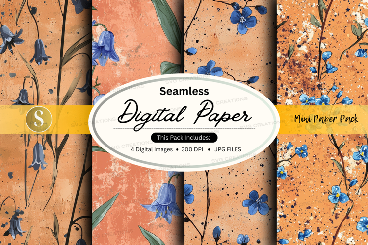 Digital Paper Seamless Blue Flowers Floral Design 300 Dpi Jpg Files Textured Background Mini Paper Pack