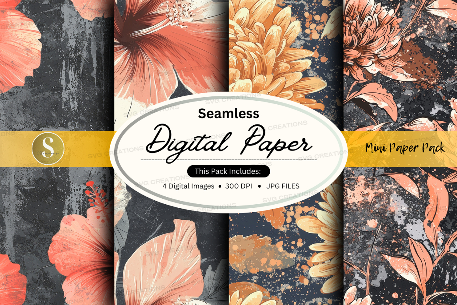 Texture Grunge Floral Pattern Digital Paper Jpeg 300 Dpi