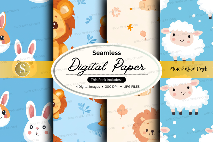 Digital Paper Seamless Sheep Jpeg 300 Dpi Cute Animals Lions Bunnies