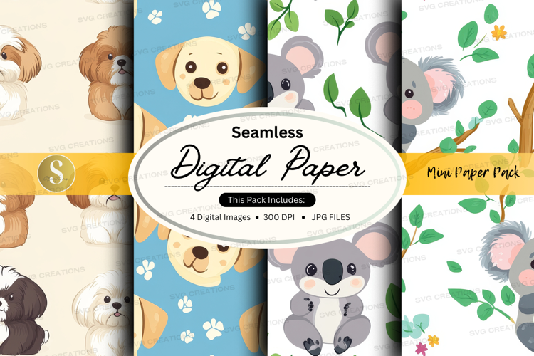 Design Digital Paper Seamless Patterns Dogs Crafting Cute Animals Bears Koalas