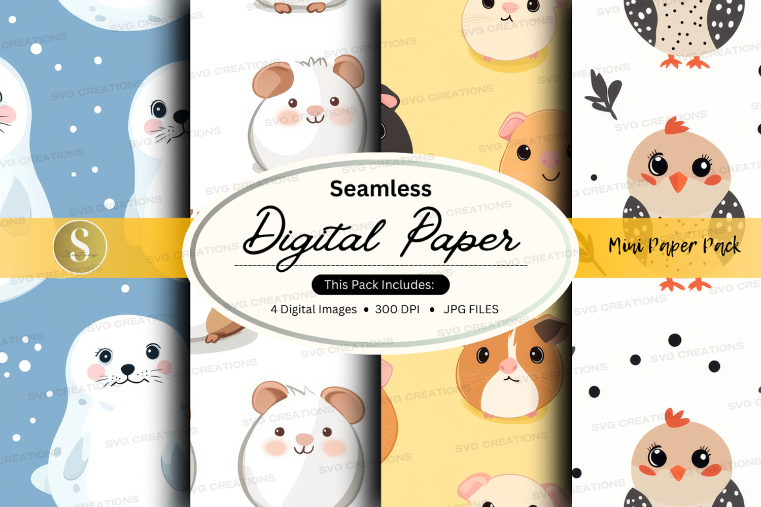 Digital Paper Seamless Pattern 300 Dpi Cute Animals Animal Patterns Design Background Crafting Paper Jpeg Files
