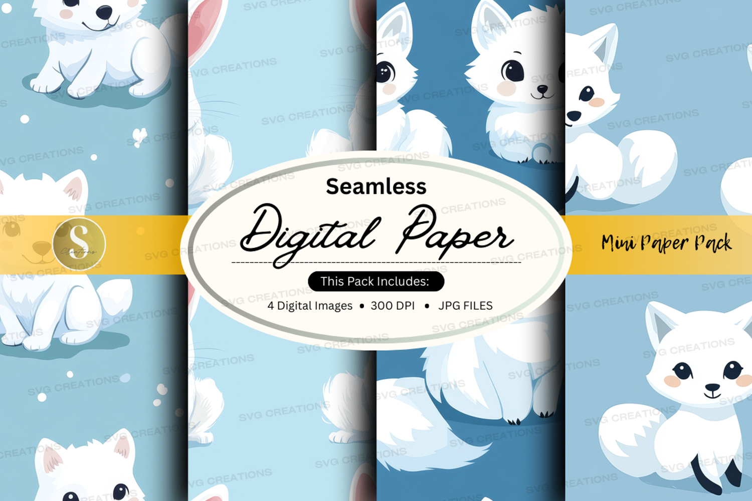 Digital Paper Seamless Pattern Blue Background Pattern Design Digital Crafting White Kittens