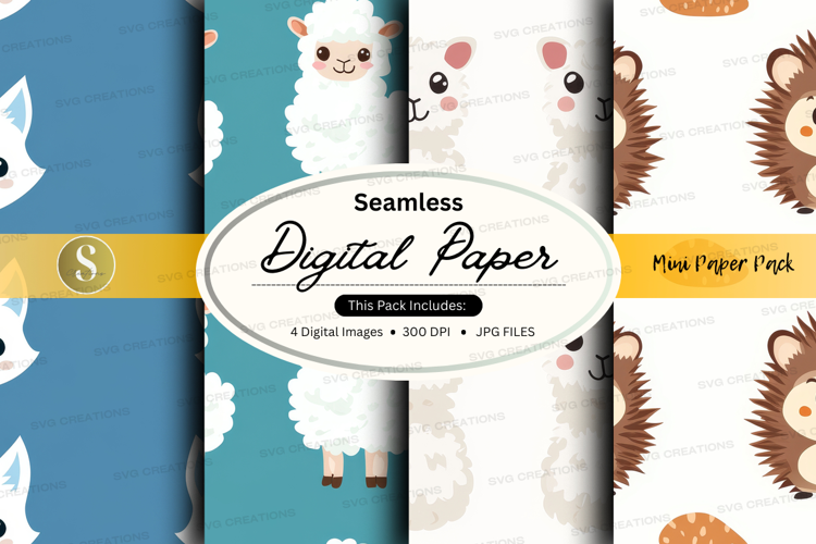 Design Digital Paper Seamless Patterns Sheep Crafting Cute Animals Hedgehogs Llamas High-resolution Jpeg Files
