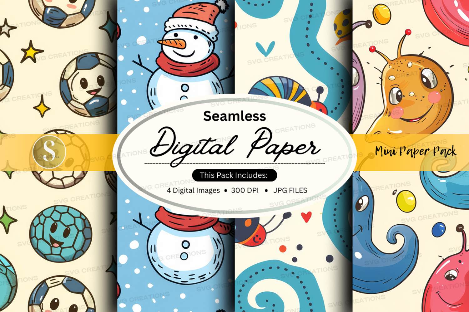 Digital Paper Seamless Patterns 300 Dpi Snowmen Sports Balls Jpg Files Underwater Creatures