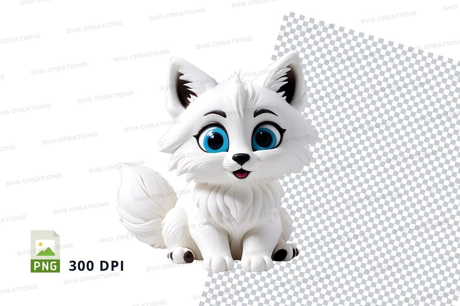 Cartoon 3d Animal Playful Cute Sitting Fox White Blue Eyes