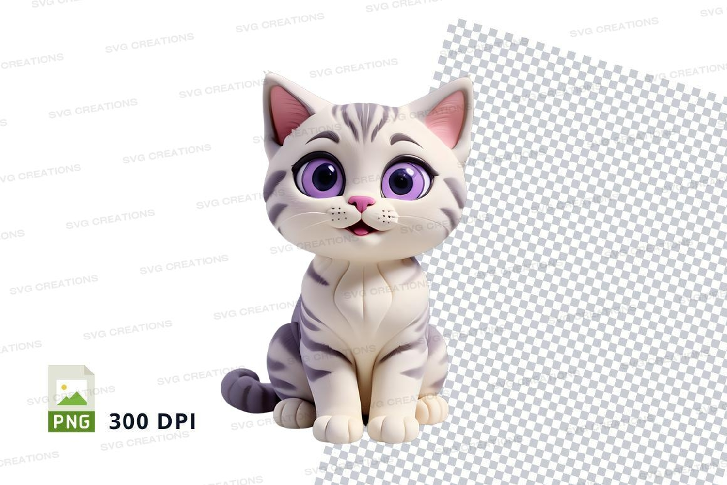 Cartoon Cute Cat Toy Animated White Fur Gray Stripes Purple Eyes