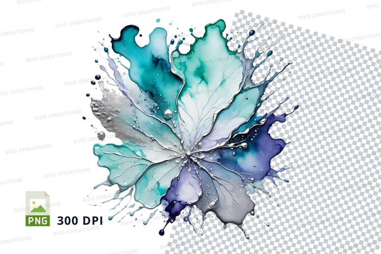 Watercolor Art Creative Flower Splash Abstract Purple Blue Teal Petals