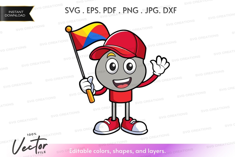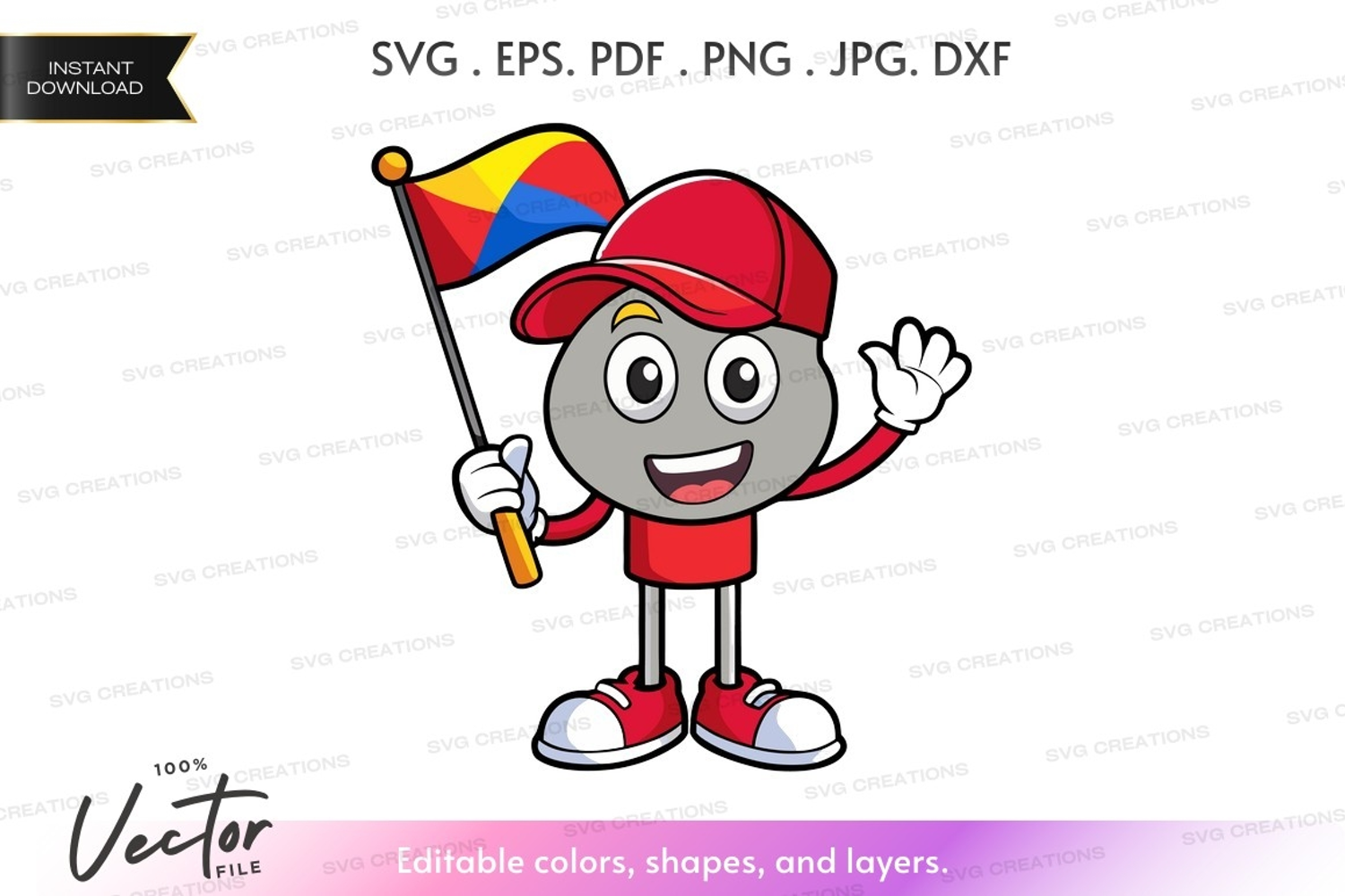 Character Cartoon Happy Friendly Flag Waving Outfit Red Cap