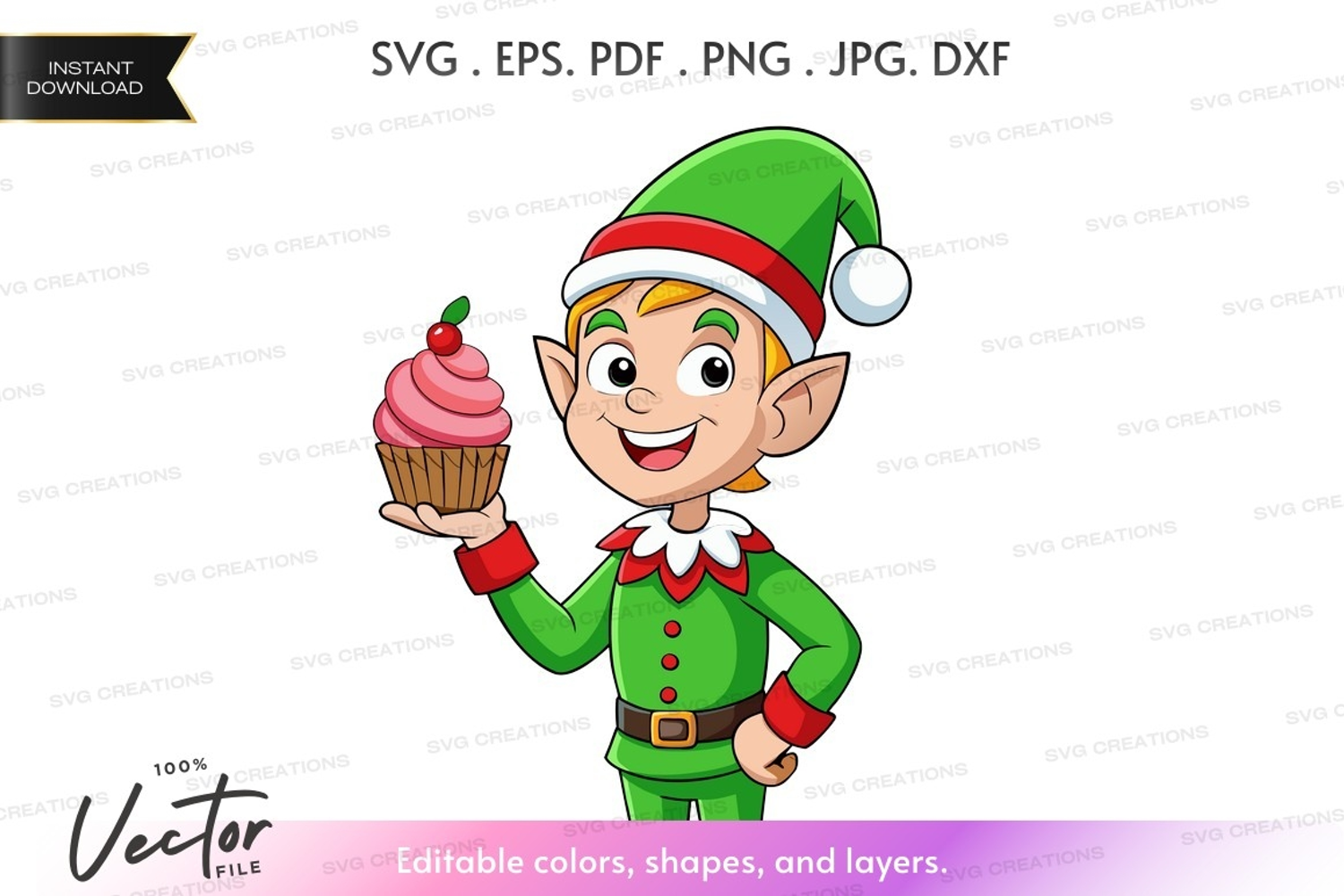 Sweet Holiday Christmas Elf Cheerful Cupcake Cherry Festive Frosting Vector Silhouette