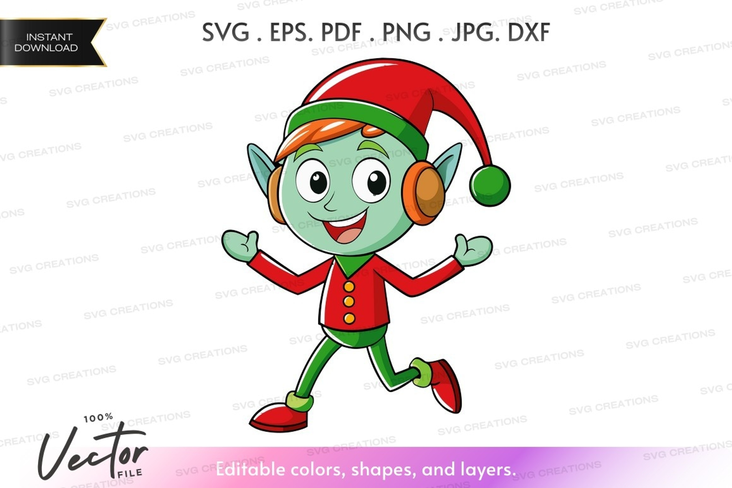 Cartoon Green Happy Hat Elf Red Running Outfit Animated Joyful