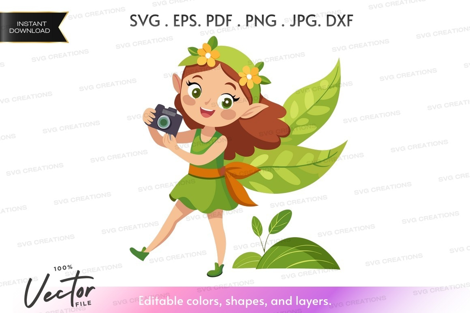 Nature Fairy Foliage Camera Photographer Vector Silhouette Green Wings
