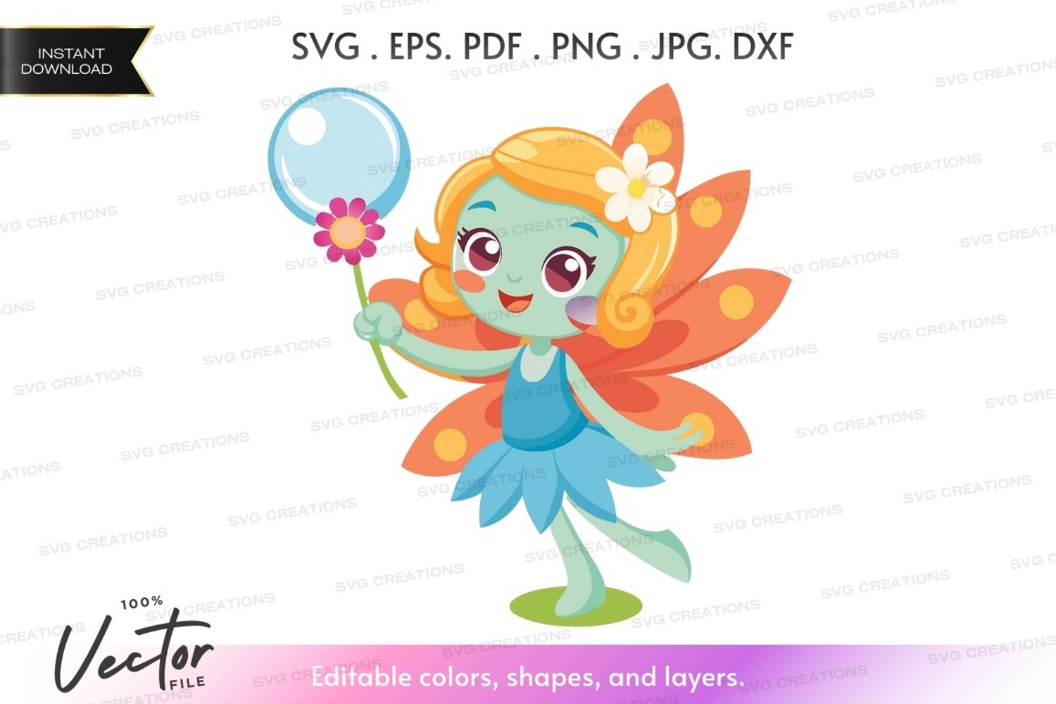 Illustration Cartoon Vector Fantasy Whimsical Childish Flower Fairy Bubble Silhouette