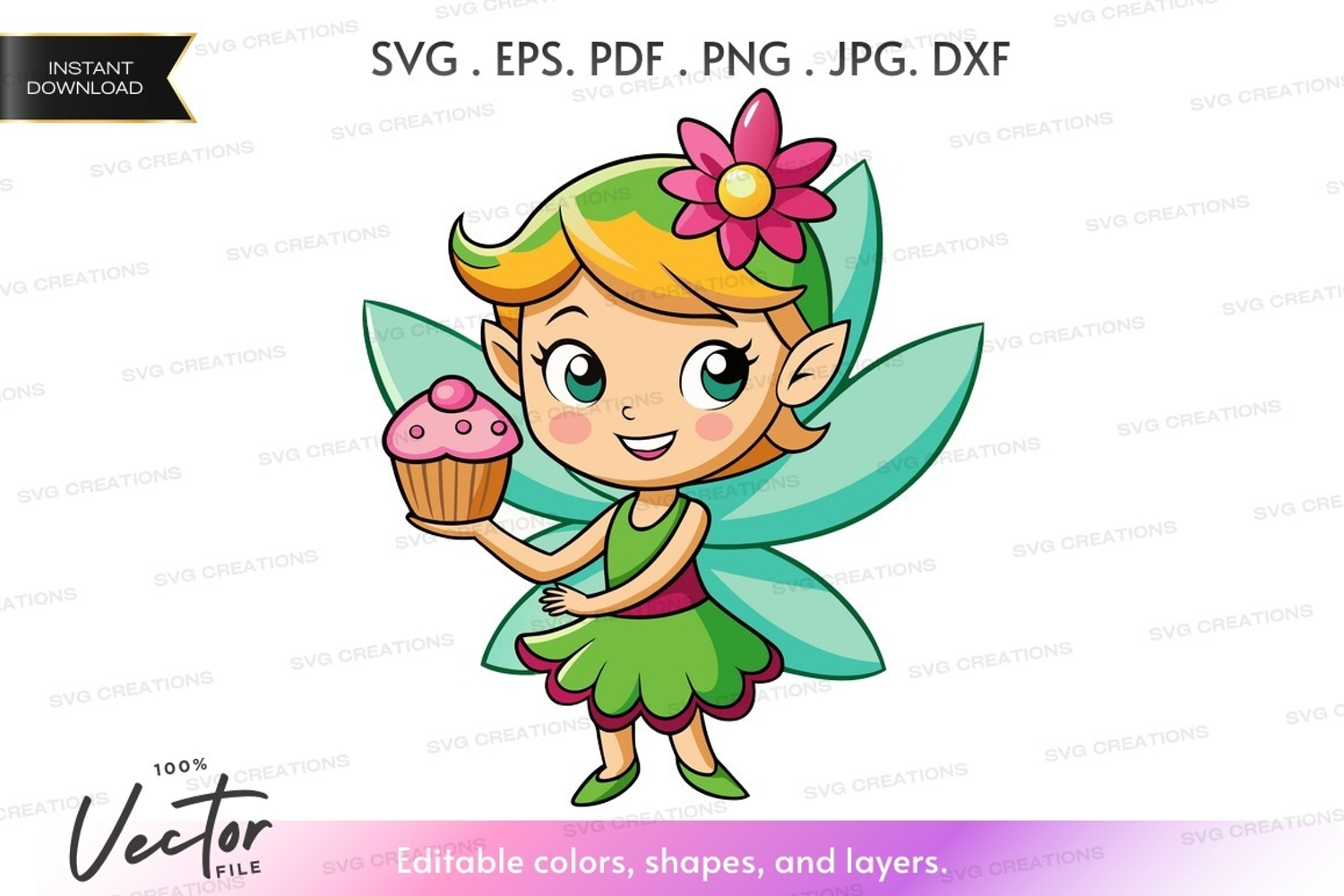 Illustration Cartoon Vector Fairy Silhouette Cupcake Pink Flower Green Wings Green Hair