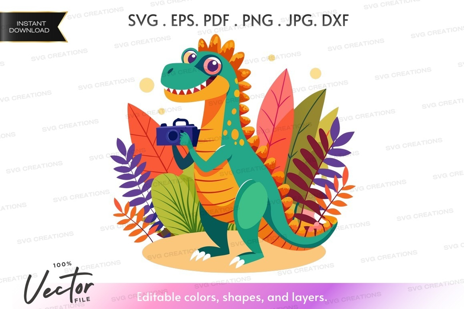 Colorful Adventure Camera Autumn Leaves Dinosaur Vector Silhouette