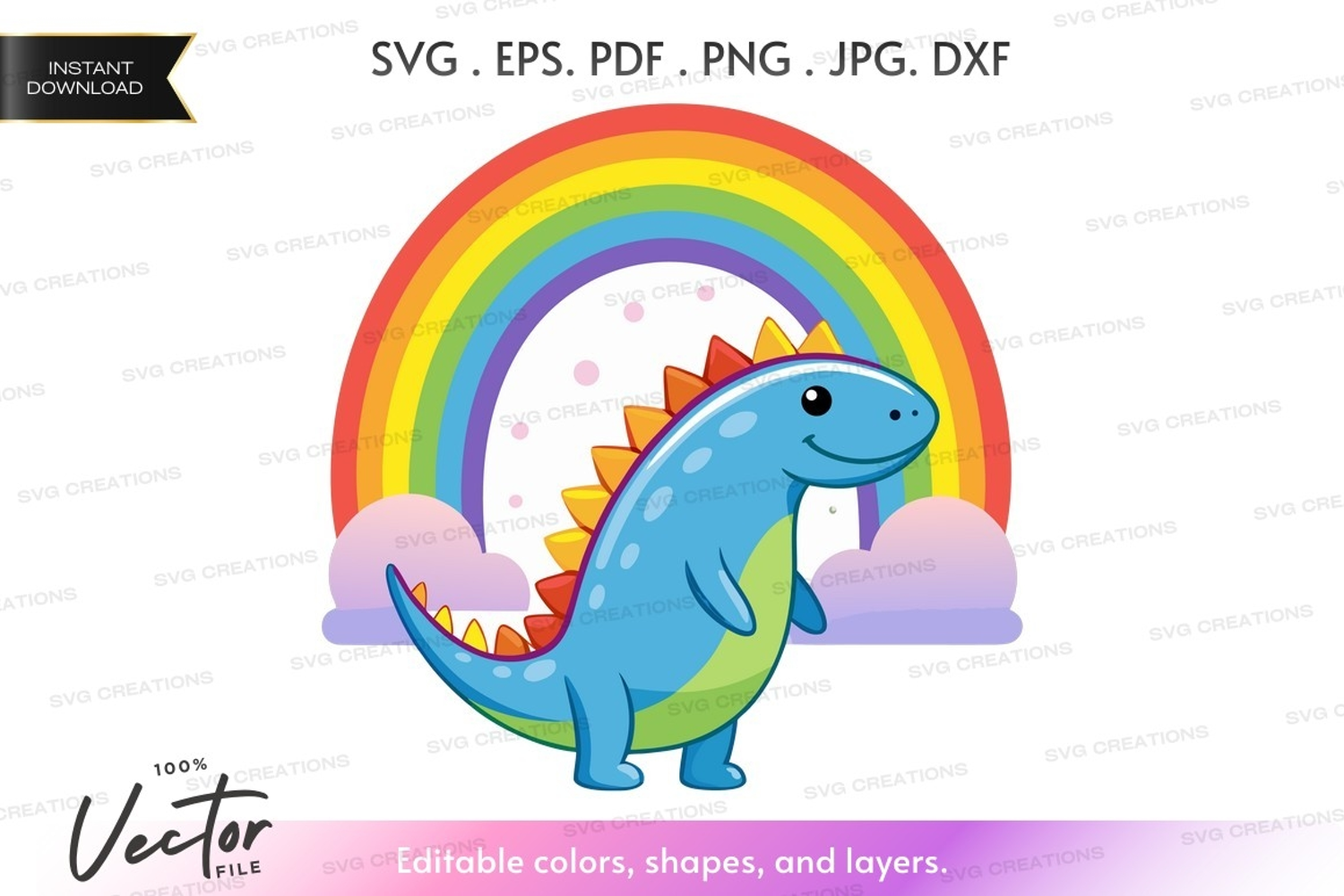 Cartoon Happy Friendly Colorful Rainbow Clouds Spikes Dinosaur