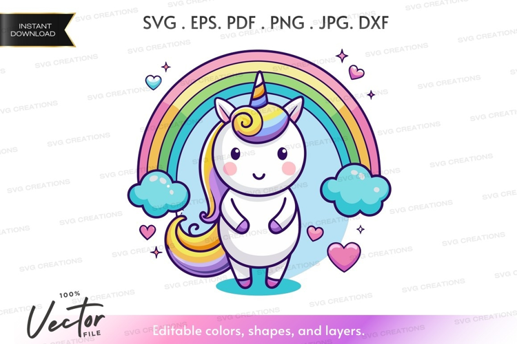 Cute Hearts Unicorn Rainbow Clouds Sparkle Magical Vector Silhouette
