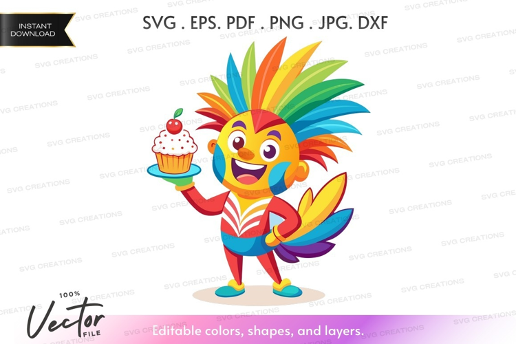Cartoon Funny Animal Colorful Bird Feathers Cheerful Cupcake Cherry Dessert