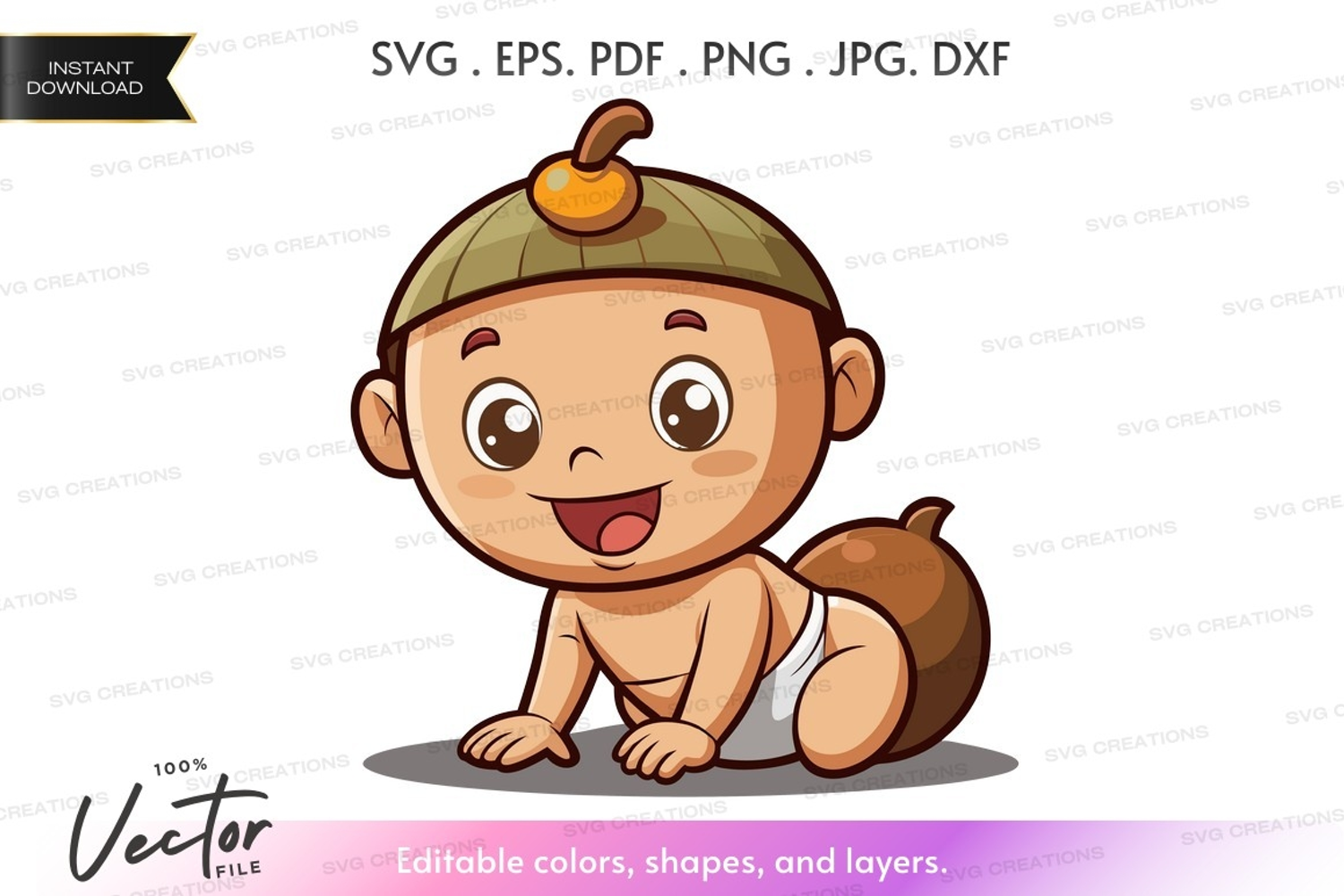 Child Illustration Funny Vector Baby Costume Acorn Smiling Crawling