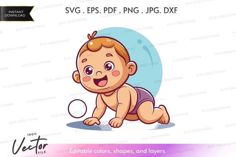 Happy baby crawling vector silhouette example image 1