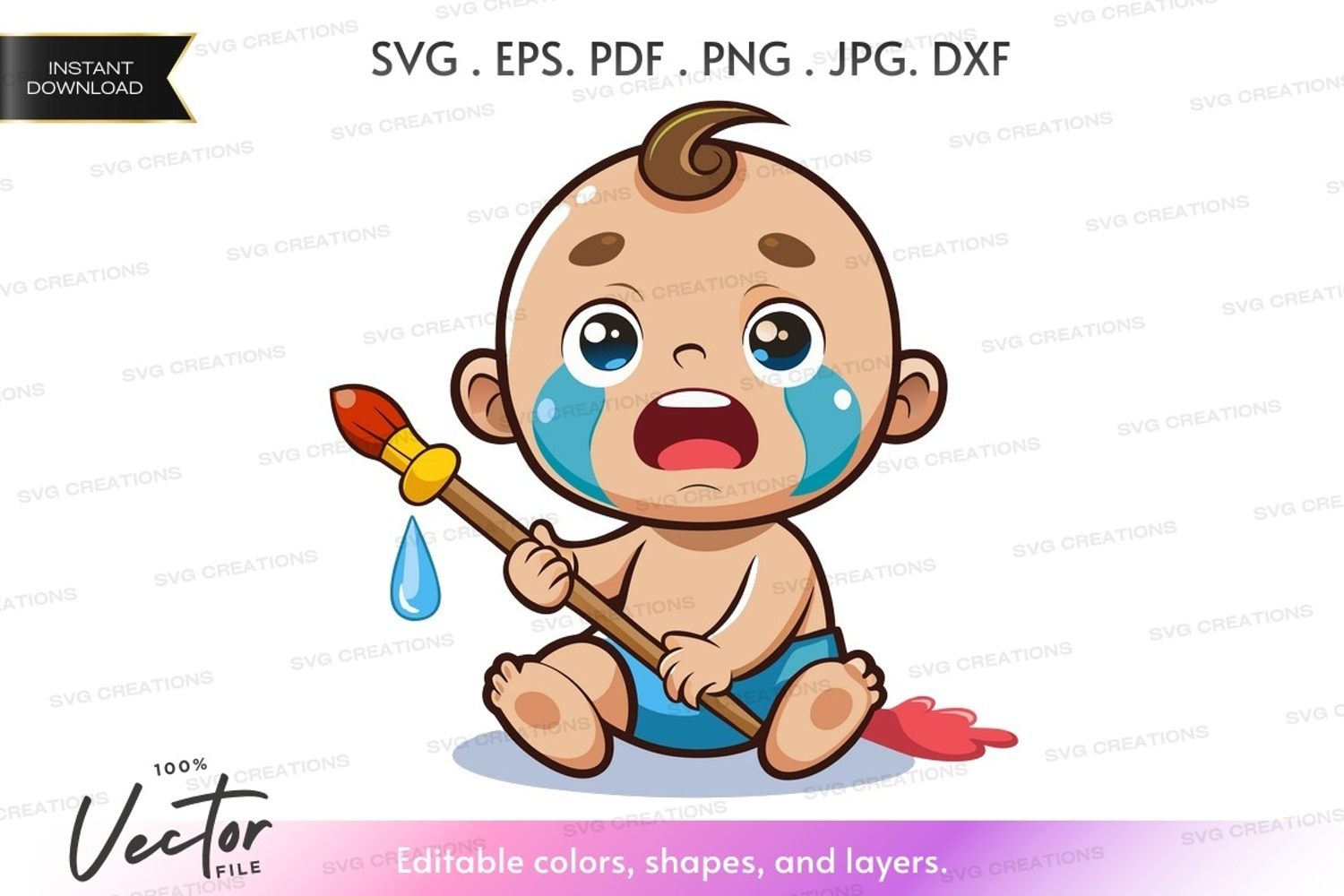 Similar Design Products to Crying baby with paintbrush - vector silhouette