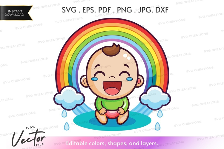 Cartoon Vector Baby Smile Happy Colorful Silhouette Rainbow Clouds Raindrops