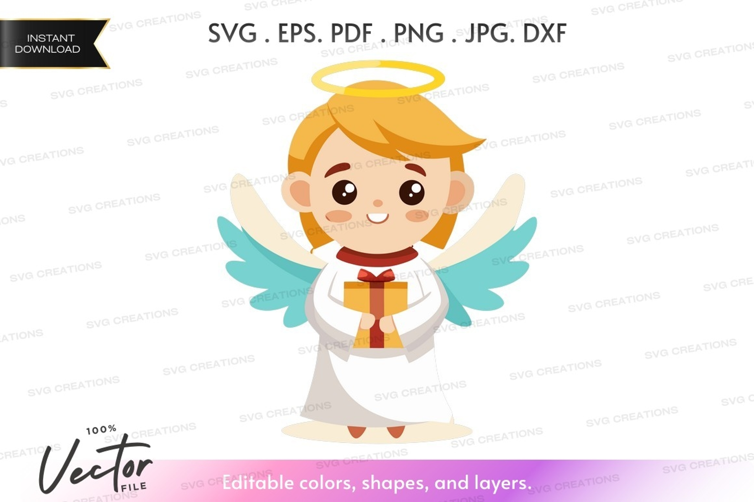Child Cartoon Gift Wings Angel Robe Halo Vector Silhouette Golden Hair Red Sash