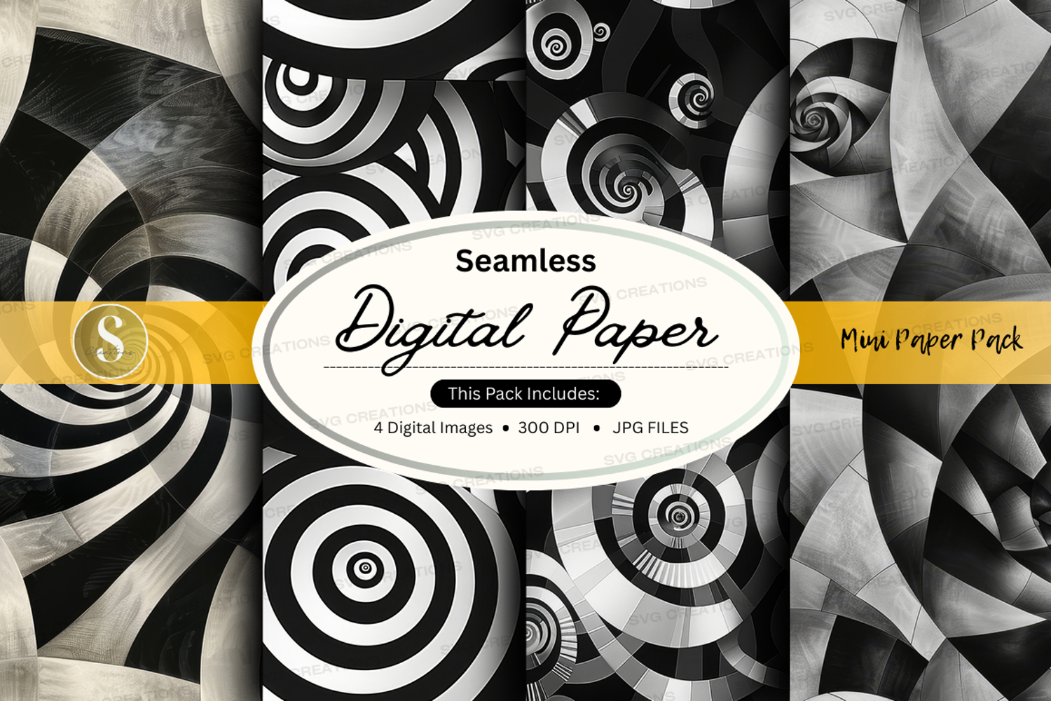 Black And White Pattern Digital Paper Seamless Spiral 300 Dpi Jpeg Files
