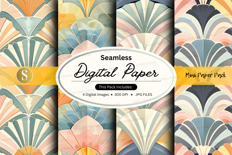 Art Deco Colorful Digital Paper Background Seamless Jpeg High-resolution Fan Pattern