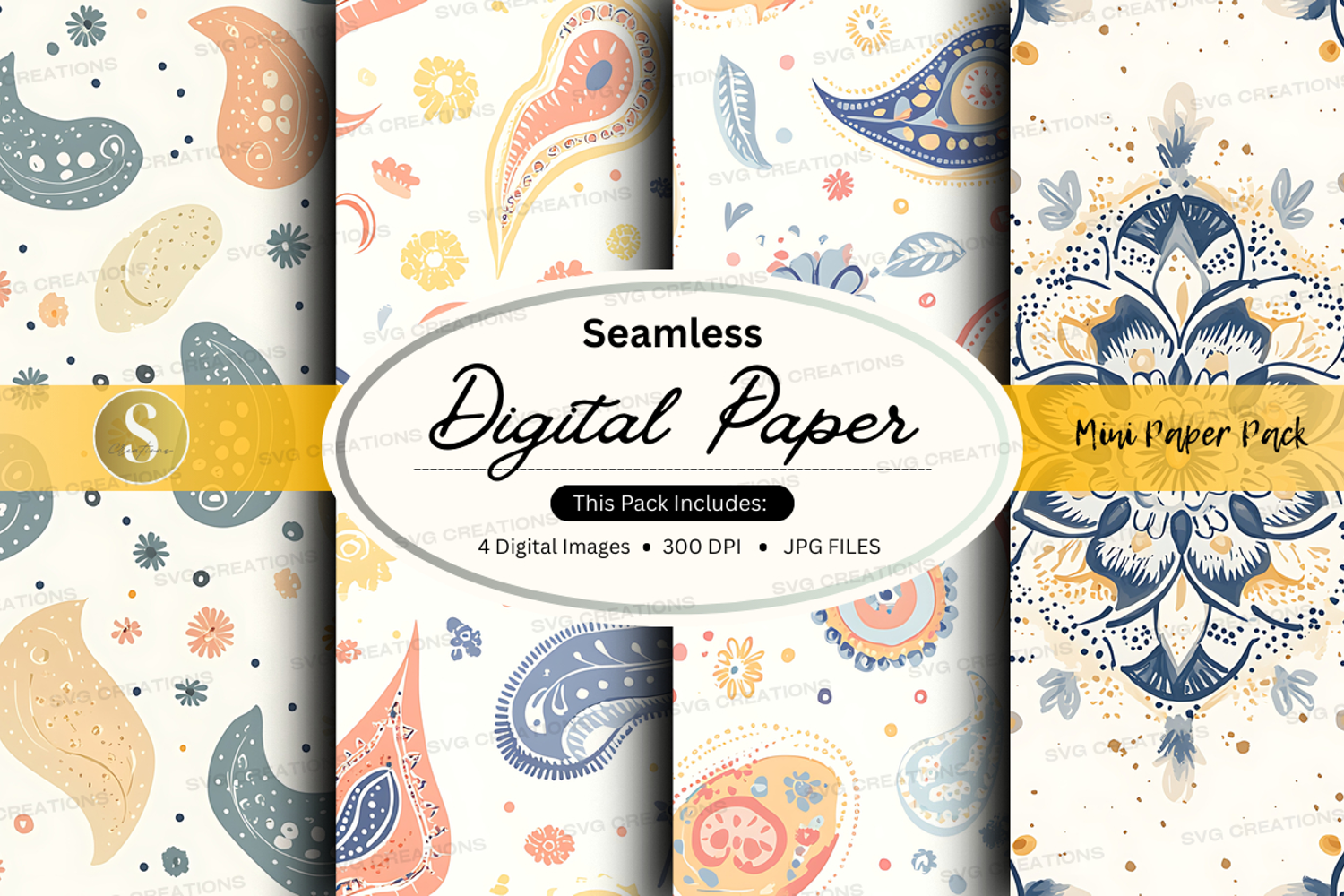 Floral Digital Paper Seamless Patterns 300 Dpi Paisley Pastel Colors High-resolution Jpeg Files