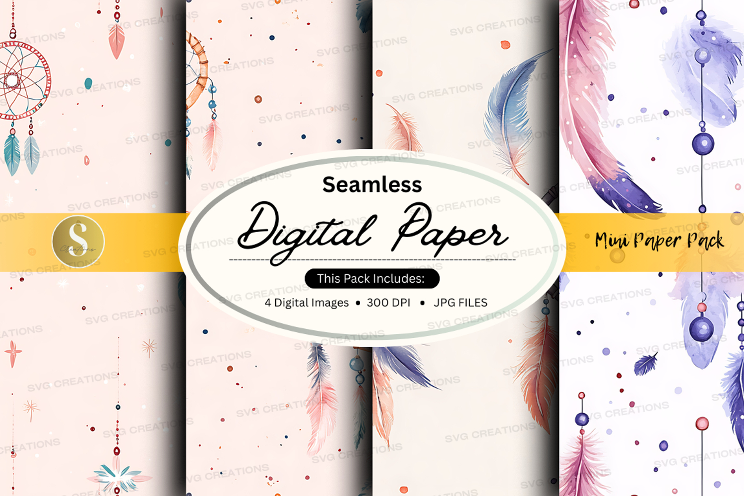 Pattern Digital Paper Background Seamless Feather Dreamcatcher Pastel Jpg 300 Dpi