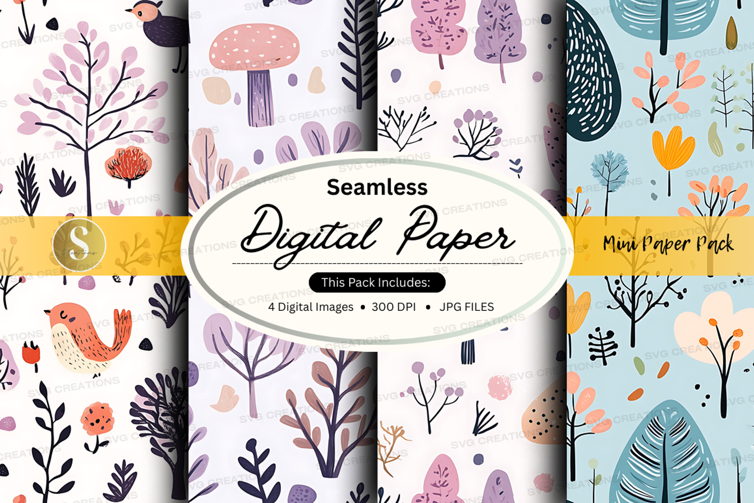 Digital Paper Seamless Patterns 300 Dpi Jpg Files Forest Theme Nature Illustrations
