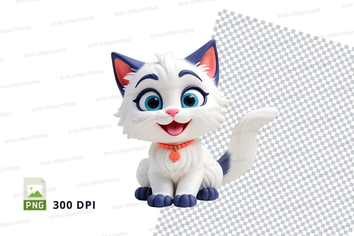 Cartoon Animal Cute Blue Cat White Tail Smiling Paws Ears