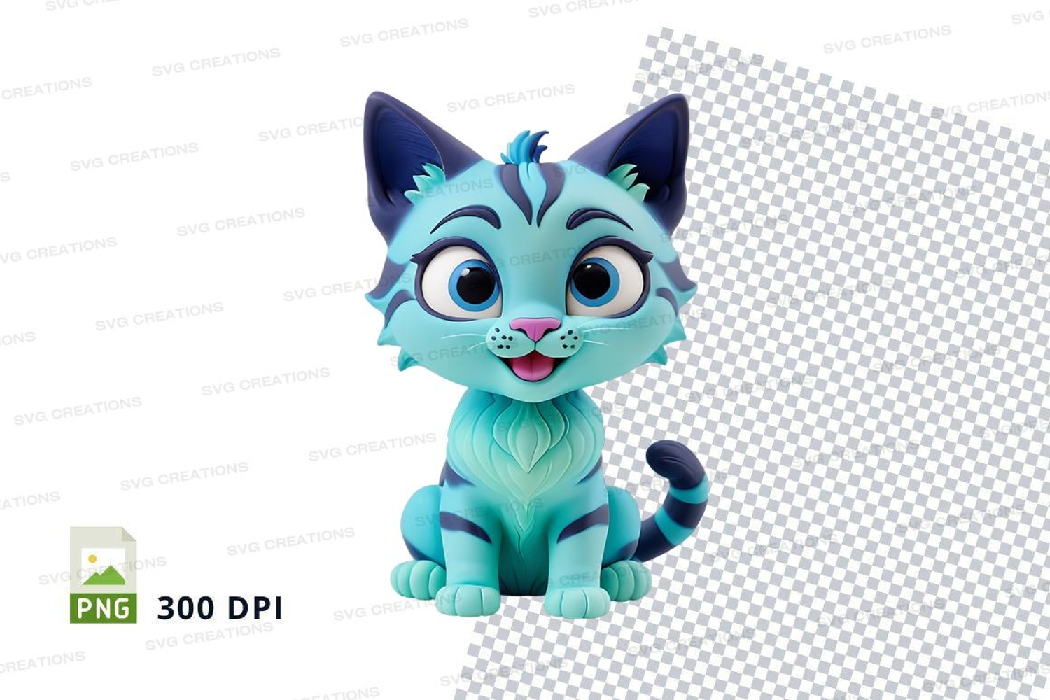 Cartoon Funny Animal Cute Clipart Blue Cat White Turquoise Egg